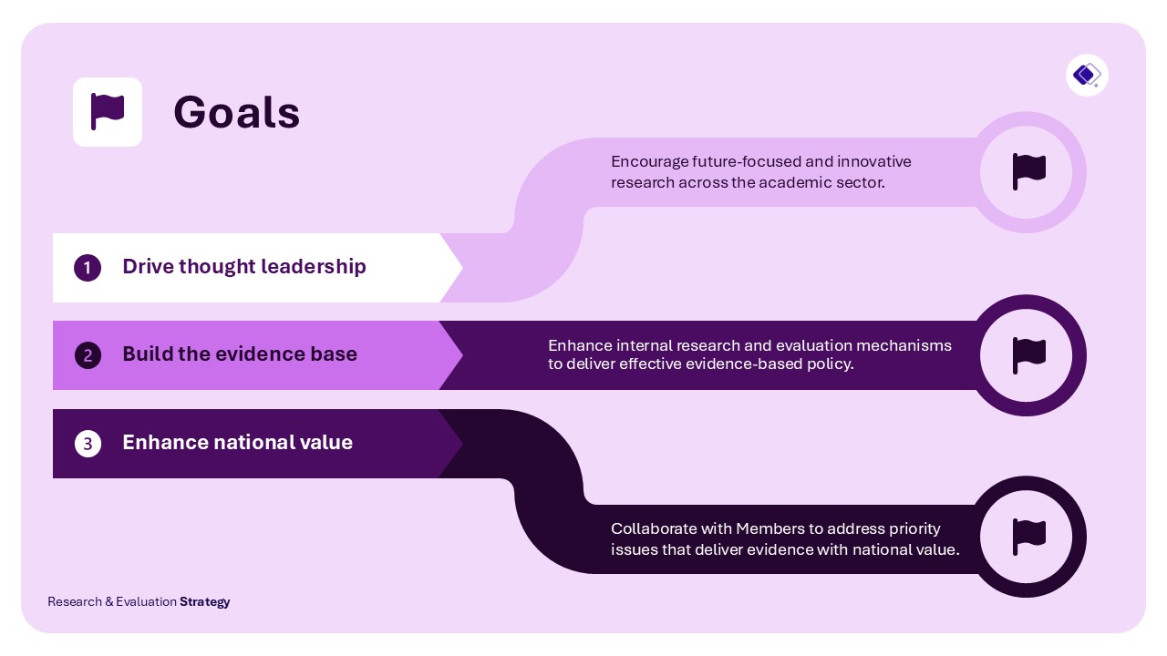 The Strategy supports a forward-looking research agenda that anticipates emerging issues, addresses national priorities, and strengthens connections across the research ecosystem to maximise impact.