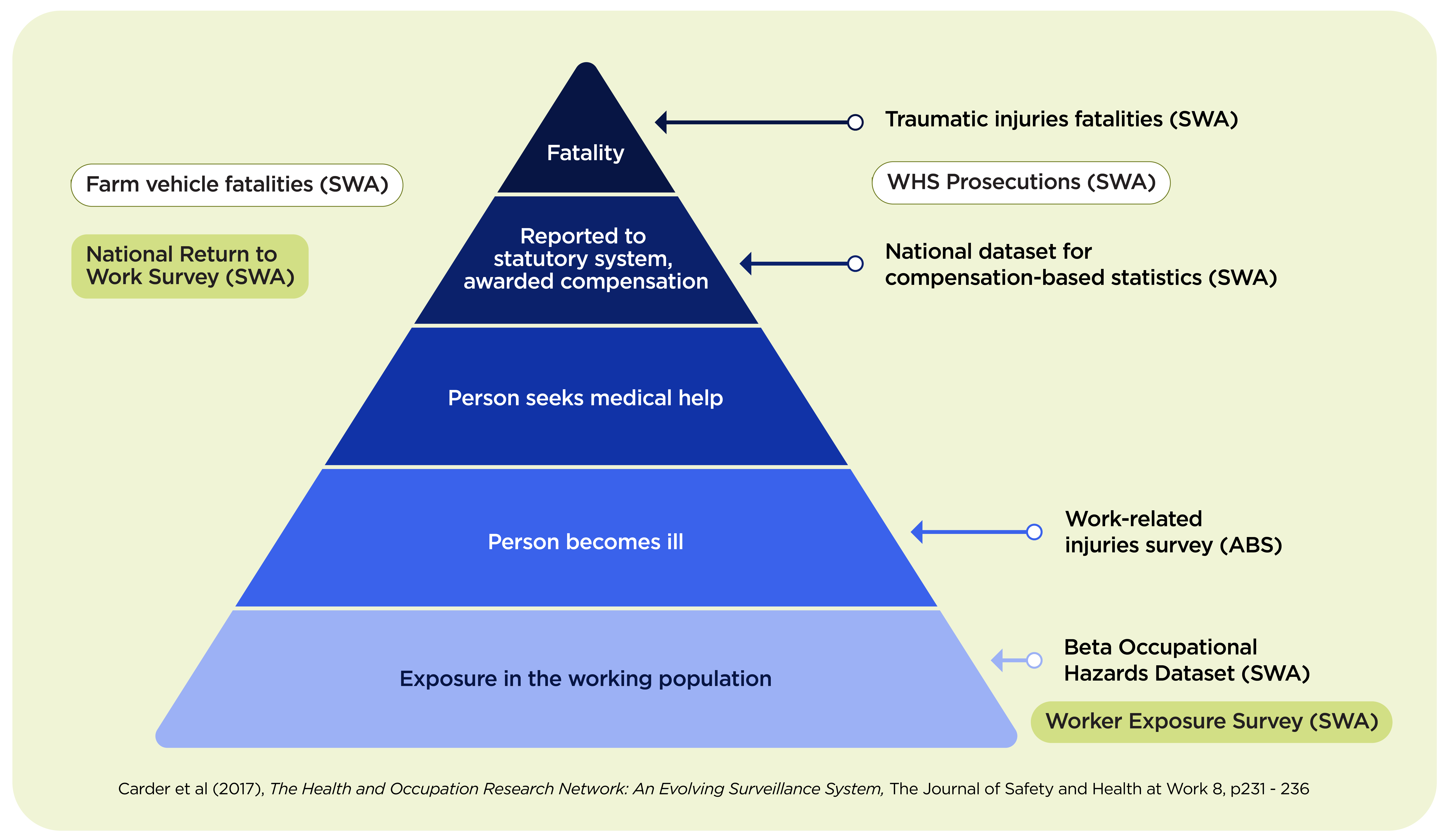 Workplace health and safety and workers’ compensation data plays a critical role in understanding and mitigating risks faced by workers across Australia. However, to create a complete picture of work-related injuries and illnesses, we need a range of data sources, especially at the earliest stages of risk, or exposure.
